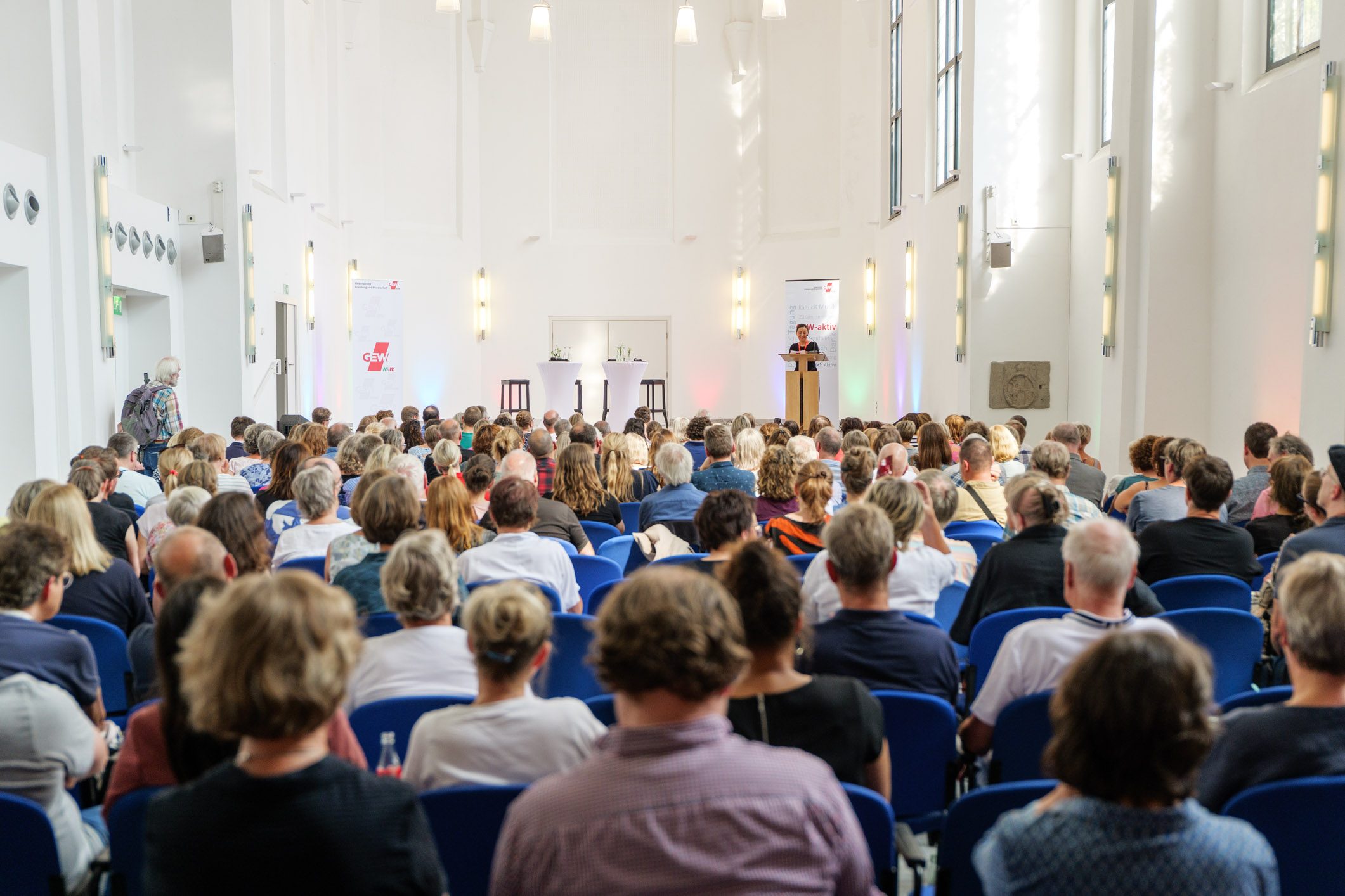 Bei der GEW-aktiv-Tagung kommen wir jedes Jahr mit unseren aktiven Gewerkschafter*innen aus ganz NRW zusammen – für einen persönlichen Austausch und die Vernetzung untereinander. Wir starten an Tag 1 meist mit einem Bühnenprogramm – mit kulturellen Beiträgen, spannenden Vorträgen und einem Podium, bei dem bekannte Gäst*innen aus Politik und Gesellschaft zu aktuellen Themen miteinander ins Gespräch kommen. In internen Arbeitsgruppen und Workshops an Tag 2 diskutieren wir gemeinsam über unterschiedliche Bildungsthemen und sammeln neue Ideen für die ehrenamtliche Arbeit vor Ort.