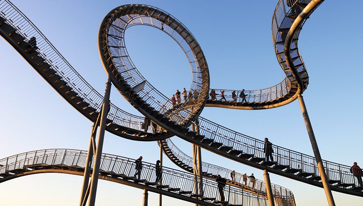 Kein Fahrgeschäft und dennoch eine Achterbahn: Die begehbare Skulptur „Tiger and Turtle“ auf der Heinrich-Hildebrand-Höhe in Duisburg verspricht grandiose Ausblicke auf Fluss, Stadt und alte Industrie. Von der Stahlkonstruktion Tetraeder auf der Halde Beckstraße in Bottrop schweift der „Emscherblick“. Die Halde Hoheward in Herten, die Halde Rheinpreußen in Moers und die Halde Haniel auf der Stadtgrenze zwischen Bottrop und Oberhausen sind beliebte Kultur- und Lernorte in NRW.